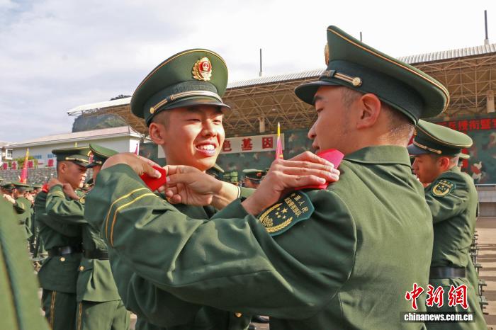 北宁12月16日电(潘昕 唐背亮 弛哲凝)武警广西总队新训团不日举办春季新卒受衔暨发誓典礼。通过3个月的淬水历练,新卒们褪来青涩、淬炼成钢,逆利竣工从中央青年到开格武士的演化,迎去军旅死涯满意义不凡的“成人礼”。